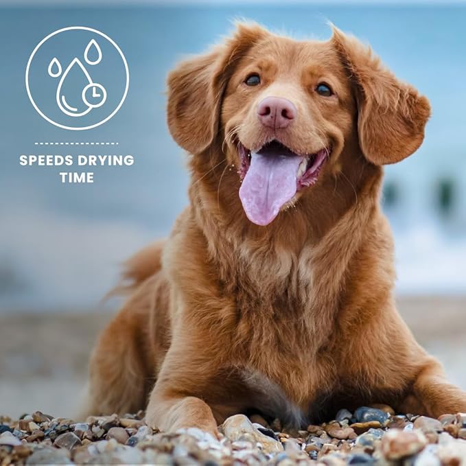 - Finishing Spray: Our refreshing pet grooming spray hydrates your pet’s coat, soothes their skin, and eliminates static effectively. Apply it after washing your dog's coat, as the spray speeds up the drying time and makes detangling effortless.