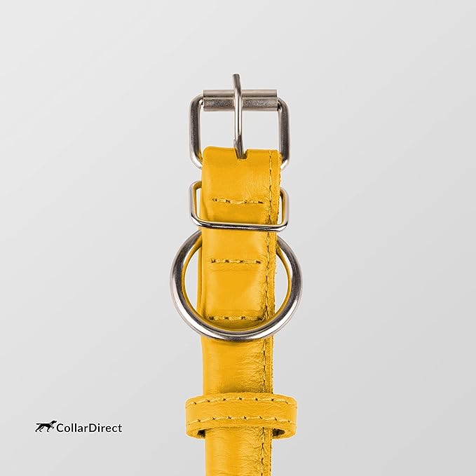 CollarDirect Rolled Leather Dog Collar, Soft Padded Round Puppy Collar, Handmade Genuine Leather Collar Dog Small Large Cat Collars 13 Colors (8-11 Inch, Yellow Textured)