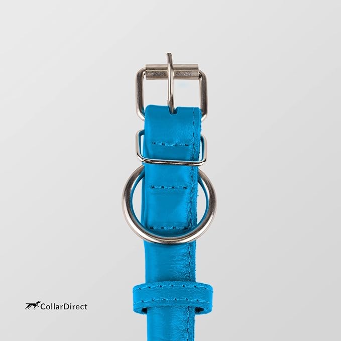 CollarDirect Rolled Leather Dog Collar, Soft Padded Round Puppy Collar, Handmade Genuine Leather Collar Dog Small Large Cat Collars 13 Colors (8-11 Inch, Light Blue Textured)