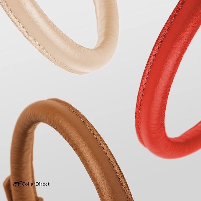 CollarDirect Rolled Leather Dog Collar, Soft Padded Round Puppy Collar, Handmade Genuine Leather Collar Dog Small Large Cat Collars 13 Colors (15-19 Inch, Red Textured)