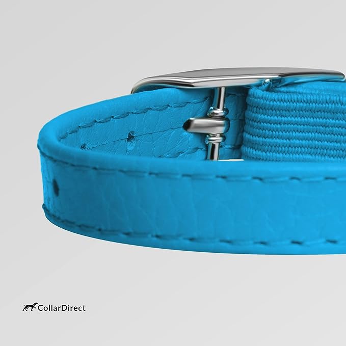 CollarDirect Leather Cat Collar, Kitten Collar with Removable Bell Black Blue Red Orange Lime Green (8-11 Inch, Light Blue)