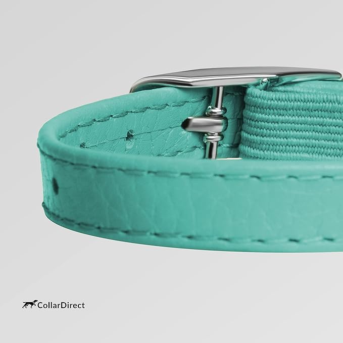 CollarDirect Leather Cat Collar, Cat Safety Collar with Elastic Strap, Kitten Collar for Cat with Bell Black Blue Red Orange Lime Green (Neck Fit 6"-7", Mint Green)