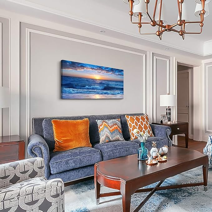 canvas wall art for living room Blue Ocean Sea sun landscape painting bathroom Wall Decor Ready to Hang for Home Decorations office family bedroom kitchen Works canvas Prints pictures 20" x 40"inch