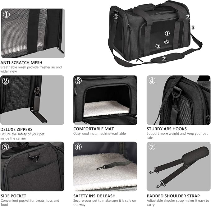 - AIRLINE APPROVED CARRIER - With airline-approved design, you can take your pet to go to everywhere. This pet carrier provides two connecting loop handles for balanced carrying as a dual seat belt or luggage strap to secure transport