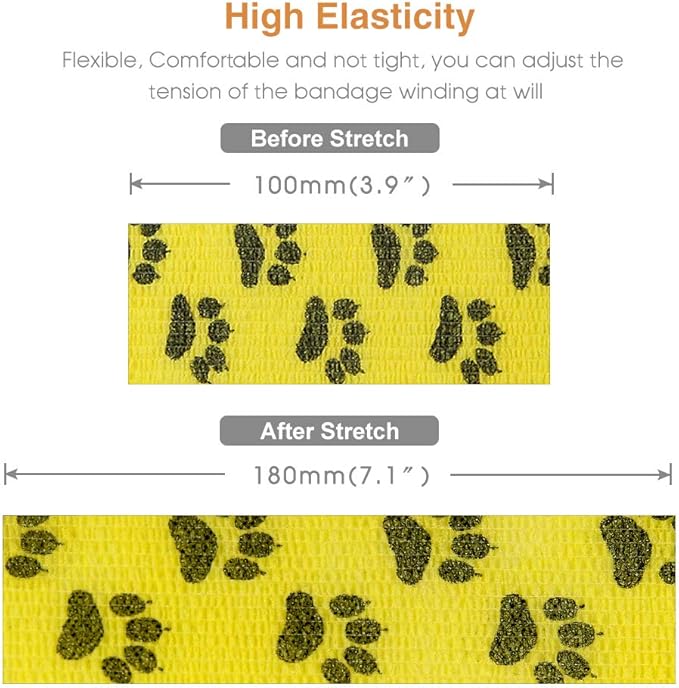- ★ High Elasticity & Self Adhesive - Self adhesive bandage wrap ratio of over 180%, providing adjustable tightening force and excellent support. AUPCON Vet Wrap sticks to itself not the hair and skin.It is great for applications where adhesive is not wanted. It’s great for Great for emergency aid kits and field activities.