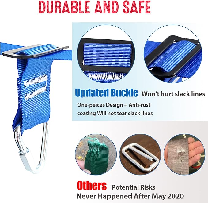 - TOP QUALITY & SAFETY - High quality PE material and High-strength anti-rust treated steel components will last for years. Each Ninja Warrior accessory is tested for a 600 LBS WEIGHT CAPACITY. We upgraded the "ONE-PIECE" and coated design buckle and solved the problem of slack line tearing.
