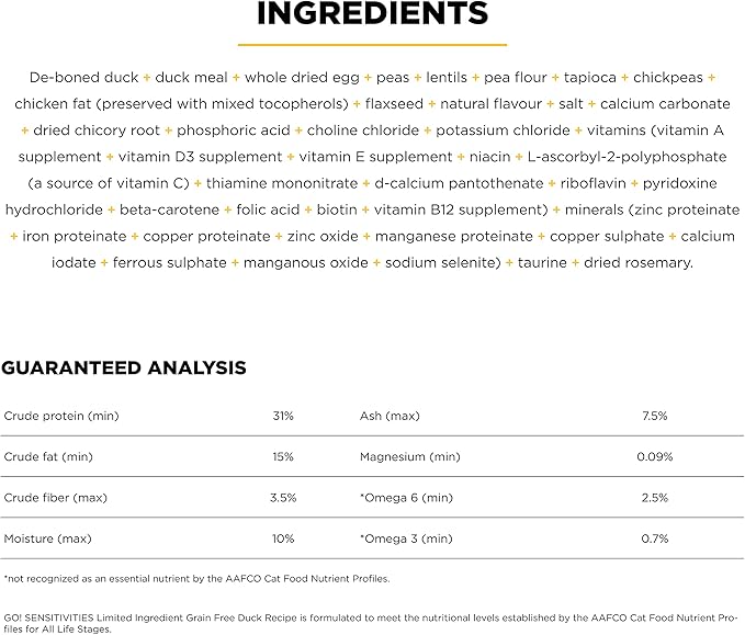 Go! Solutions Sensitivities Limited Ingredient, Grain-Free Dry Cat Food, Duck Recipe for Sensitive Stomach, 16 lb Bag