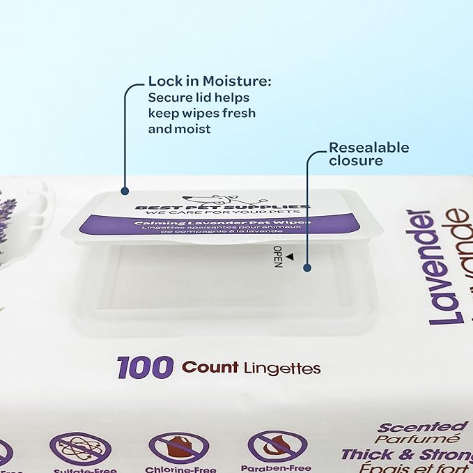 Best Pet Supplies Pet Wipes for Dogs - Dog Wipes Cleaning Deodorizing, for Coats, Ears, Paws - Calming Lavender, Aloe Vera, 100 Count