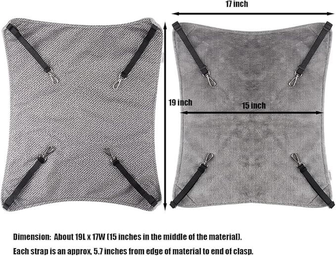 Cat Hammock for Cage, Soft Pet Bed Fit Ferret, Kitten, Puppy, Small Dog, Adjustable-Strap/Load Capacity 30lb (Gray)