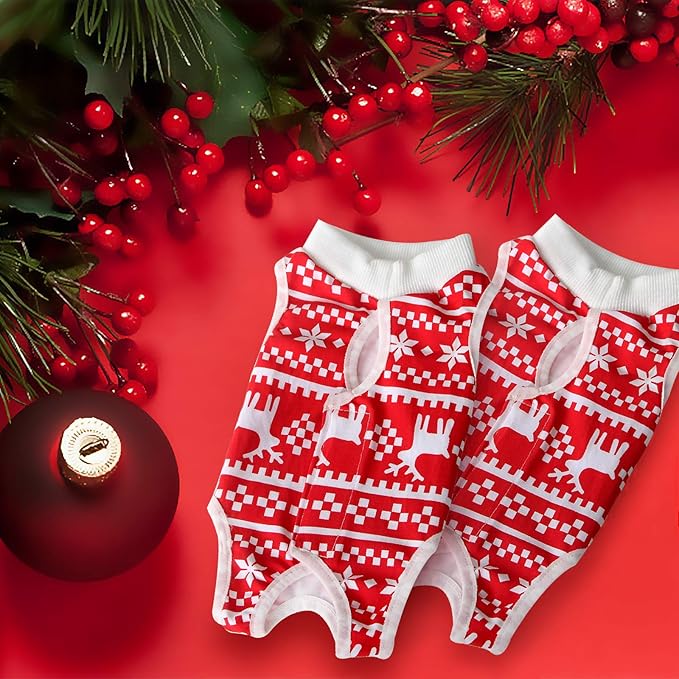 Cat Professional Recovery Suit for Abdominal Wounds or Skin Diseases, E-Collar Alternative for Cats and Dogs, After Surgery Wear, Pajama Suit (S, Christmas Red)