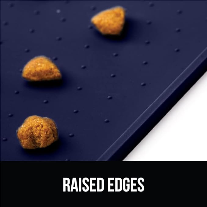 GORILLA GRIP 100% Waterproof Raised Edge BPA Free Silicone Pet Feeding Mat, Dog Cat Food Mats Contain Spills Protects Floors, Placemats for Cats and Dogs Water Bowl, Pets Accessories 28x18 Navy