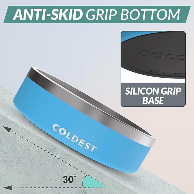 - 𝐍𝐎 𝐌𝐎𝐑𝐄 𝐌𝐄𝐒𝐒: Is your pet's mealtime leaving a trail of spills and chaos? Coldest dog water bowl is designed with your fur baby in mind. It boasts pet-friendly materials for safe eating, while the non-slip design and anti-skid grip bottom work together to prevent spills and provide stability. The true triple wall insulation prevents leaks, while never sweat technology maintains optimal comfort. Make mealtime a tidy affair with Coldest large dog bowl.