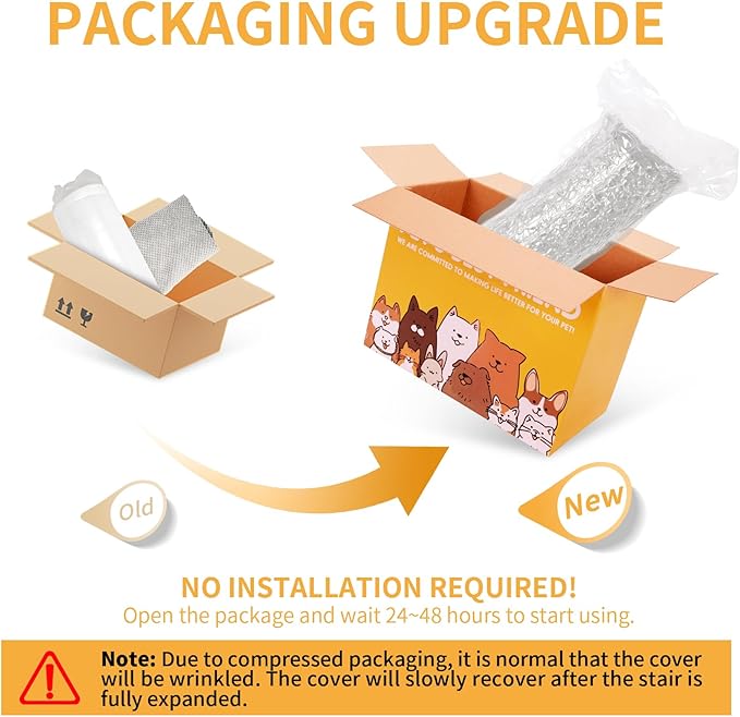 - Special Notice:Our dog ramp is packed in a vacuum compression package,please make sure to open all packages before use, let the sponge come in contact with the air, and it takes time to rebound after opening. Generally, it can fully rebound after 24-48 hours, depending on the temperature, the higher the temperature, the faster the rebound.