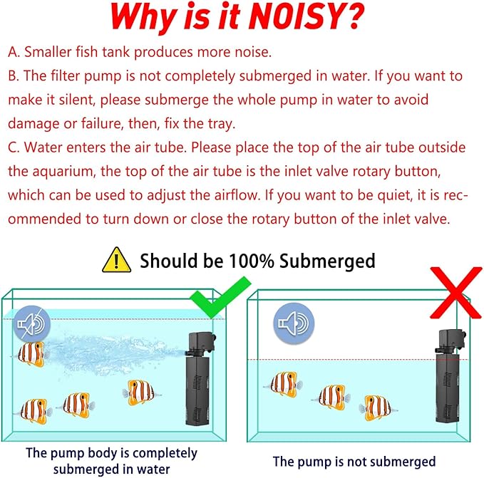 - CRYSTAL CLEAR - Reducing the number of times the fish tank needs to be changed. Aquarium air pump, filtration, water pump, and water waves making all in one multi-functional underwater aquarium filter.