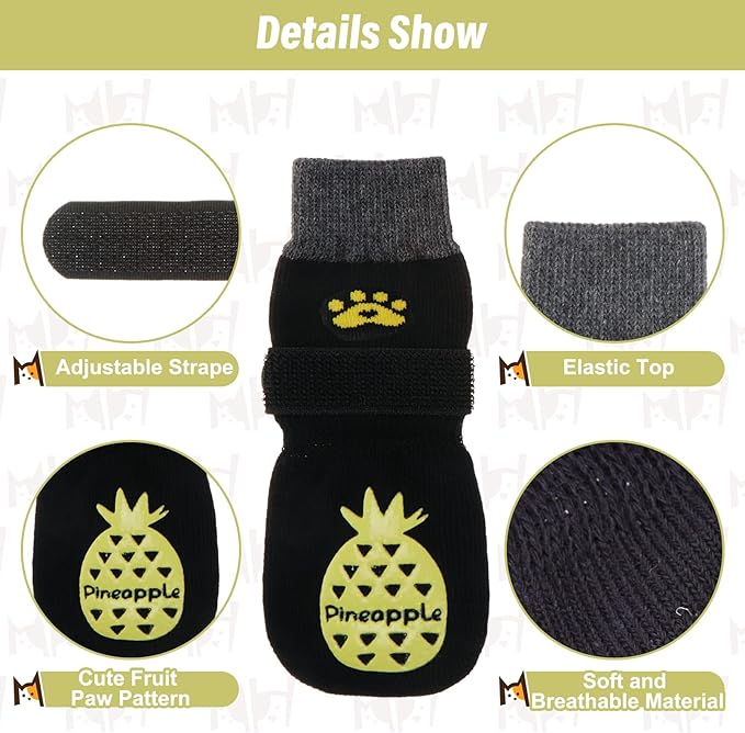 - Durable Material: Made of elastic, comfortable and soft material, which makes your dog safe and relaxed. Cute fruit pattern makes your dog look charming. Most of size breeds can use these socks. Nice gifts for doggies on Christmas Xsmas Holidays.