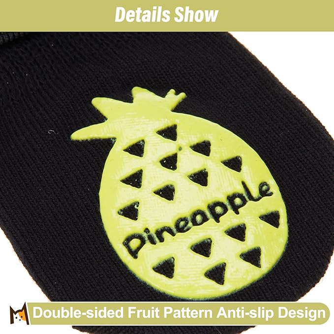 - Durable Material: Made of elastic and comfortable material, which keeps your dog safe and relaxed. The soft and breathable fabric makes these socks protect the dog’s paws from being burned in the hot summer and prevent dog claws from stones and glass. Cute fruit pattern even makes your dog look charming.