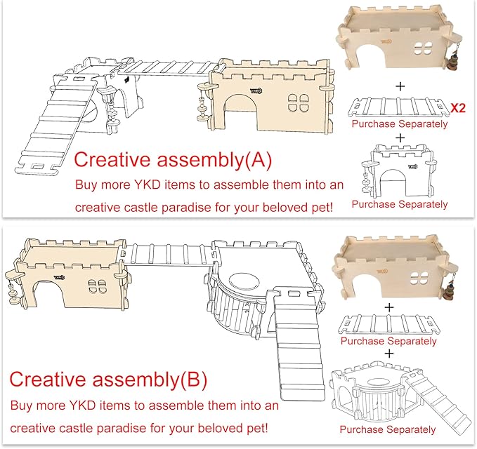 - The house is mde from european imported birch plywood, which is very breathable & healthy for rodents, built by the tongue and groove method without nails, and be sanded each corner to smooth. Install easily without glue or nails to avoid the pet injuries. brings reliable & enjoyable living to keep your furry friend's well-being, chewable & durable toys for your pets.
