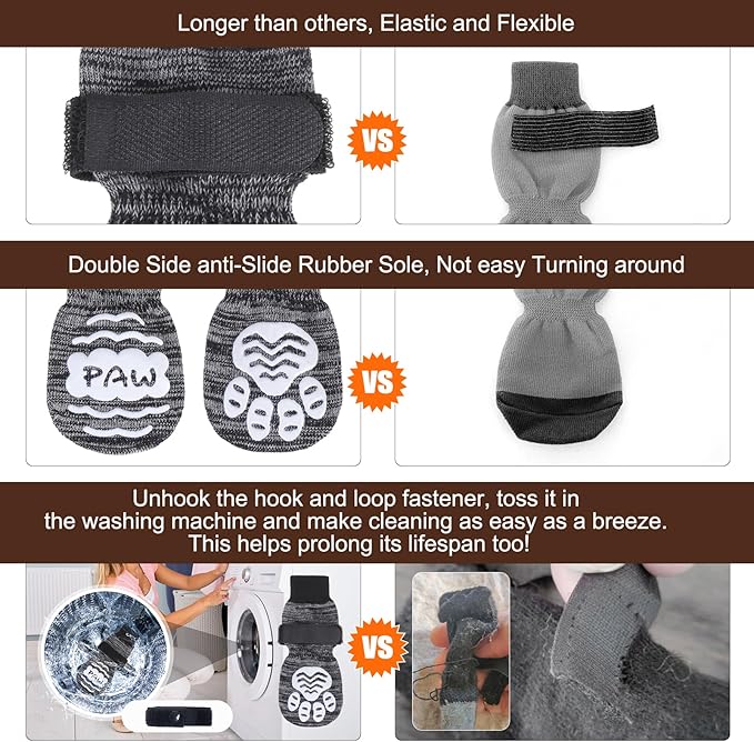 - Anti-slip: With a three-sided non-slip rubber sole, your pet's paws will have a good grip on the floor. For hardwood floors, if your baby's paws have a problem slipping on wood floors, we recommend you buy these socks with a anti-slip adhesive. Use non-slip socks to help heal foot wounds and prevent the dog from licking and further irritating the wound. ⚠️Please note that we have a design patent to protective this exclusive design!