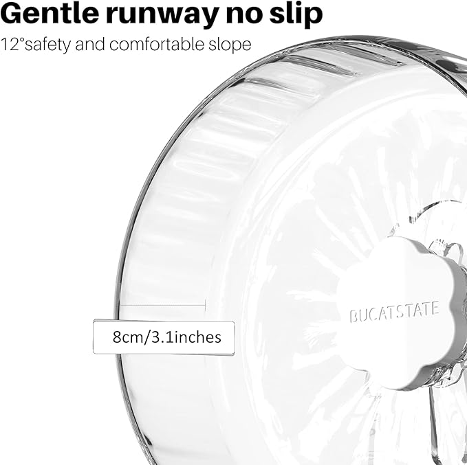 - Full transparent material, easy to clean, it emits dynamic light feeling during running,perfect for hamster habitat decor.