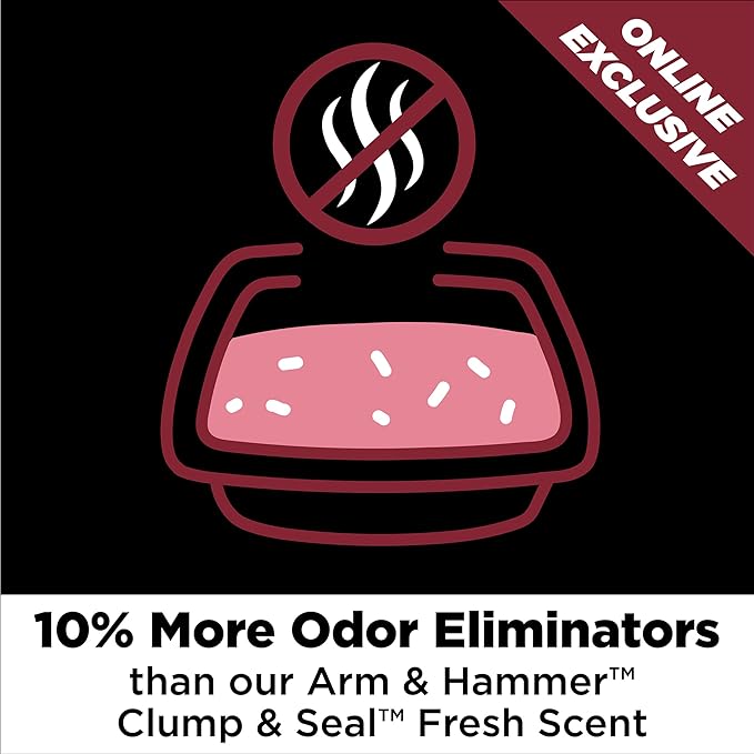 - 10% MORE ODOR ELIMINATORS: Benefit from a 10% increase in odor-eliminating power with this clump and seal cat litter that features ARM & HAMMER Baking Soda for unparalleled odor management.