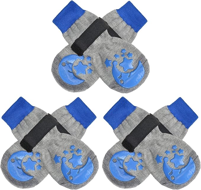 BEAUTYZOO Anti-Slip Dog Socks with Grips Traction Control for Small Medium Large Dogs, Non Skid Indoor Double Side Pet Paw Protector for Hardwood Floor Wear (Moon and Star, Small)