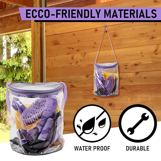 9 Pieces Horse Grooming Kit Tack Room Supplies Set with Organizer Tote Bag, Oval Massage Curry, Hard and Soft Brush, Hoof Pick, Sweat Scraper, Bathing Sponge, Combs for Horse Riders Beginners (Purple)