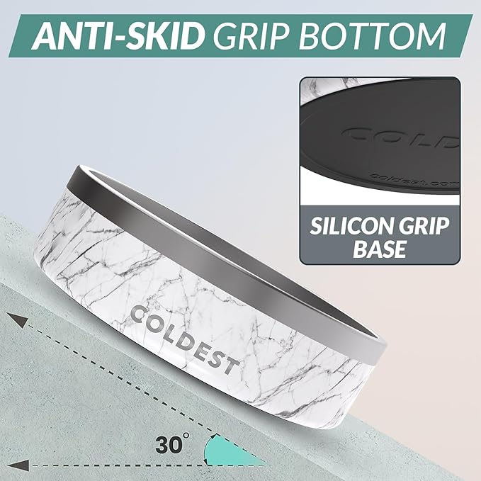 - 𝐍𝐎 𝐌𝐎𝐑𝐄 𝐌𝐄𝐒𝐒: Is your pet's mealtime leaving a trail of spills and chaos? Coldest dog water bowl is designed with your fur baby in mind. It boasts pet-friendly materials for safe eating, while the non-slip design and anti-skid grip bottom work together to prevent spills and provide stability. The true triple wall insulation prevents leaks, while never sweat technology maintains optimal comfort. Make mealtime a tidy affair with Coldest large dog bowl.