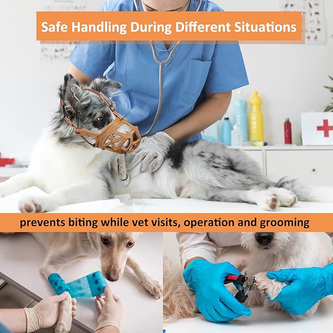 - The Only Muzzle You Need: Say goodbye to your old muzzle. The BARKLESS practical muzzle has features you need to prevent your dog from nipping, destroying, fighting and digging and eating everything while the basket-style design gives all-around mouth protection allowing your pet unrestricted drinking and panting. This muzzle for dogs make it the ideal choice for reactive dogs’ daily walks, occasional use, dog park socialization, grooming, vet visits, training, traveling, and walking
