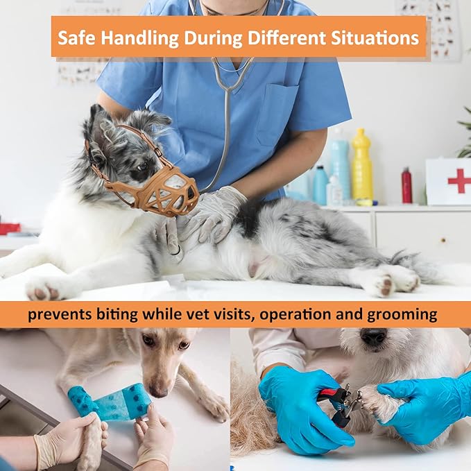 BARKLESS Dog Muzzle, Basket Muzzle for Biting, Chewing and Scavenging, Humane Cage Mouth Cover, Perfect for Grooming and Training Large Aggressive Reactive Dogs (XL, Brown)