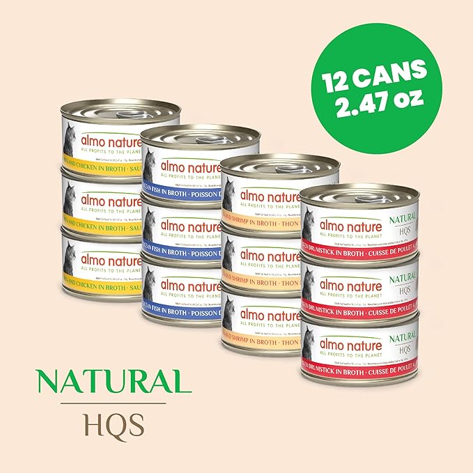 almo nature Wet Cat Food HQS Natural Rotational Diet Fish Selection & Chicken Drumstick - Variety Pack, Grain Free, Additive Free, Highly Digestible, Preservative Free 2.47-oz, 24 Pack
