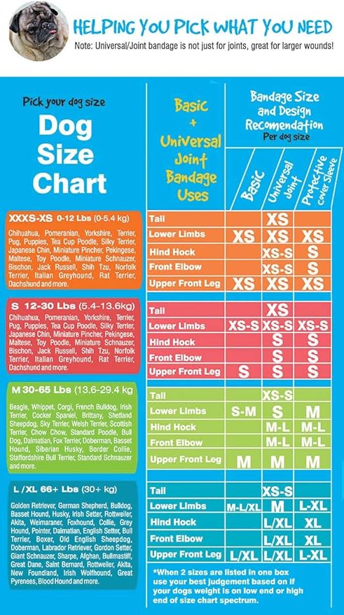 Basic Leg Bandages for Dogs, Cats, Pets -First- aid Non Adhesive Fur Friendly, Soft Stretch Wound Care, hot Spots, Fungus, Adjustable Fastening Strap Value Pack (2XS/XS 12-Pack)