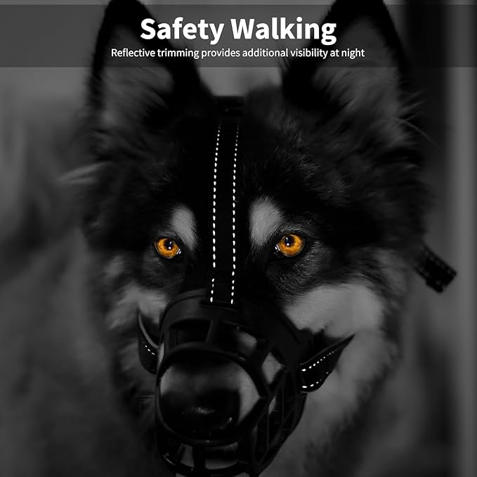 BARKLESS Dog Muzzle, Soft Basket Silicone Muzzle for Dogs to Prevent Biting and Chewing, Breathable Cage Mouth Cover for Training, Allows Drinking and Panting, Used with Collar