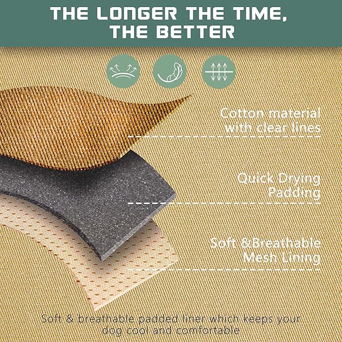 - 🐾DUARABLE & BREATHABLE MATERIAL: All Day Comfort.🐾 The heavy-duty vest made of soft cotton fabric with clear texture for the beautiful appearence. Extra durability and wear-ability, suitable for all field use. The soft padding can protect your dog's skin, while the breathable air mesh keeps your dog ventilated and comfortable. We will protect the comfort and health of the dog together with you.
