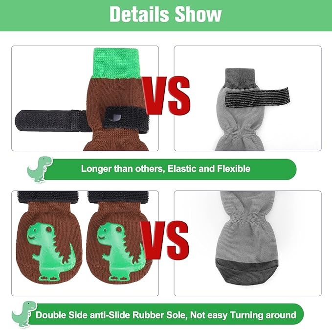 - Non-Skid: For hardwood floor, if your baby has problems who was splaying and keeps slipping on your wooden floors with back legs, we suggest you would buy these the soles which have anti-slip adhesive, which can provide extra traction. Besides, wearing a non skid sock prevents dogs from licking and irritating the wound further aid in healing foot wounds.⚠️Please note we have design patent to protective this exclusive design !