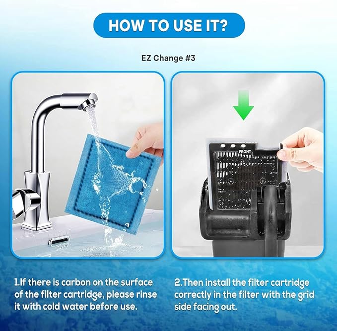 - 【Ready to use】Our fish filter cartridge is already set up, it just needs to be installed correctly on the power filter and it is ready for quick filtration. If there is carbon on the filter cotton, please clean it before use.