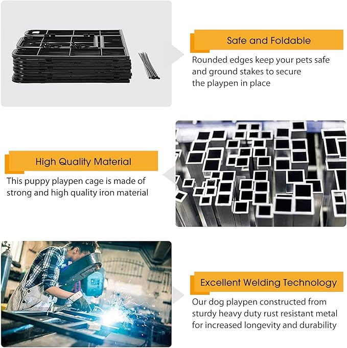 - DURABLE METAL FENCE PANELS: Heavy-duty iron with a rust-resistant finish makes this fence strong and secure. Use the sturdy fence panels as a dog fence outdoor for yard or indoor setup.