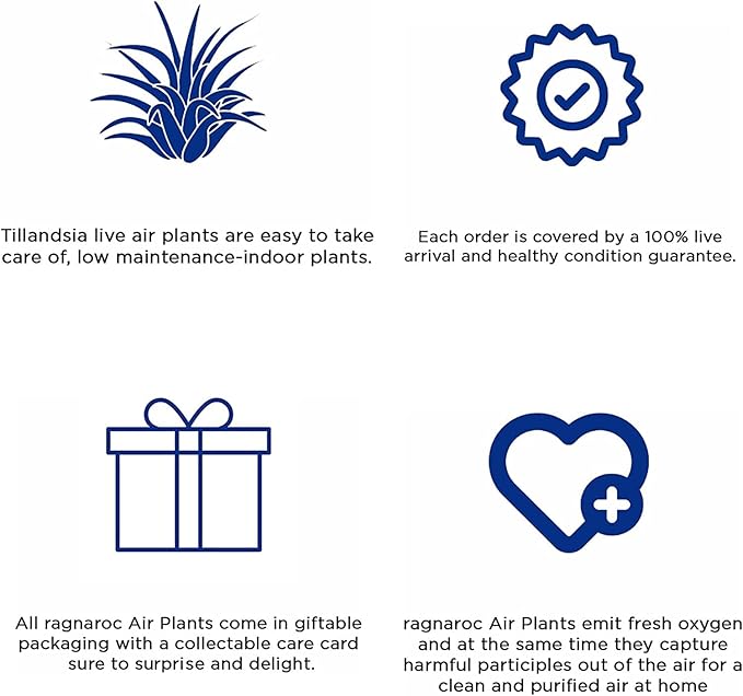 - Healthy plant arrival assurance: ragnaroc is committed to delivering vibrant and thriving air plants to your doorstep. Our live air plants are packed directly from Florida, and every order comes with a promise of their safe and healthy arrival. If, for any reason, you find yourself less than satisfied with our plants, please inform us, and we will promptly arrange a full refund or send you replacement plants.