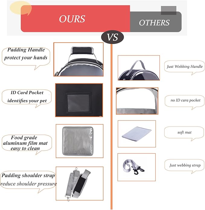 - 2.Five-sided Ventilation System: There are 6 ventilation holes located on the front, back and top of the small pet carrier bag, and two mesh windows on the left and right. This breathable enclosed environment ensures the safety and comfort of the animal