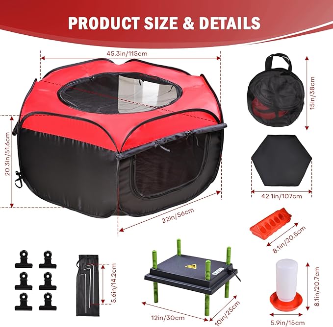- EASY TO PUT UP & FOLD - Featuring a pop-up design and built-in frame, the Tetuga chicken brooder box is easy to open and close. It includes 3 ground pegs for outdoor use and folds into a plate-sized storage bag