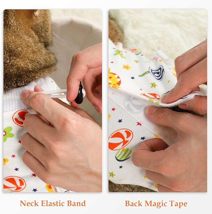 - 【Secure Fit and Easy to Put on】 Our cat surgery suit features adjustable neck elastic band and back velcro tape design, providing a secure and customized fit for your furry friend. Recovery suit for cats after spay can reduce the risk of escape or removal, and allow for easy adjustment to accommodate the cat's size and comfort.