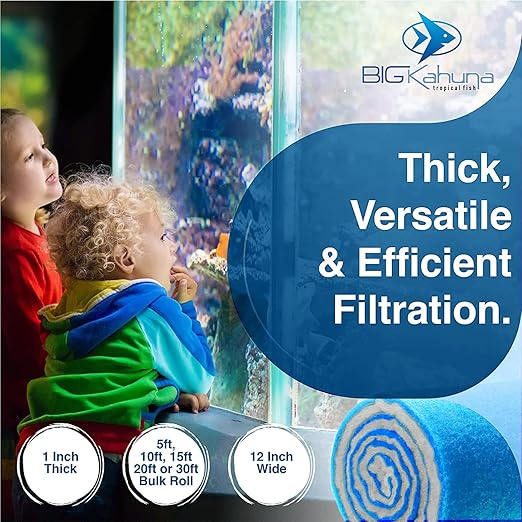 Big Kahuna Aquarium Filter Floss Rolls – 12-inch Pond and Aquarium Filter Media – 1-inch Thick Wet/Dry Aquarium Filter Pad – Bonded Media Filter for Freshwater or Marine Aquariums, Ponds - 15 feet