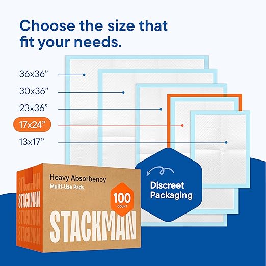 - CONVENIENT & DISPOSABLE — Each 100-pack of underpads is lightweight, travel-friendly, and disposable for quick, hassle-free cleanup after use.