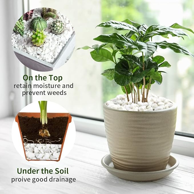 - 【White Gravel】The top of the potted is covered with a layer of white pebbles, which looks cleaner and brighter. Small white pebbles has not been artificially stained and is the original color of the stone