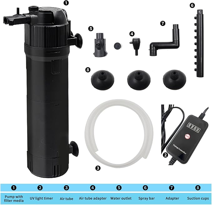 - 【Timer for U-V Light】A timer, which controls the U-V lamp to turn on at the options of every 4 hours, 8 hours, 12 hours, or 24 hours, provides you great convenience as it is not necessary to have the lamp on all the time. PS: The timer can only control the U-V lamp, not the water pump.