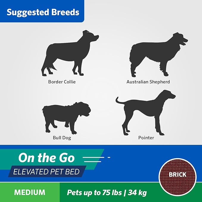 Coolaroo On-The-Go Elevated Dog Bed - Foldable Pop-Up Travel Dog Bed with Breathable, Moisture-Resistant Fabric, Carry Bag Included, Lightweight & Portable, Brick, Medium