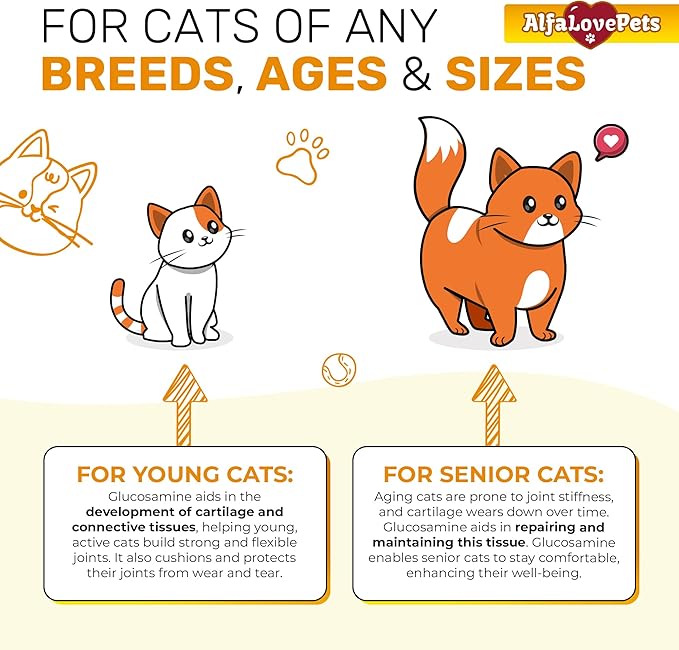 - 😻𝗣𝗲𝗿𝗳𝗲𝗰𝘁 𝗳𝗼𝗿 𝗖𝗮𝘁𝘀 - Alfa Love Pets Glucosamine Chondroitin for cats carefully formulated to enhance hip joint health and mobility in your cat.