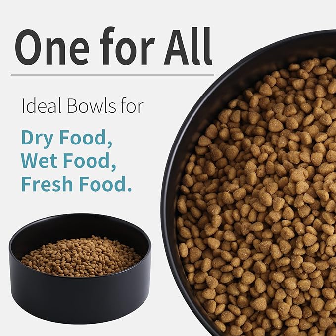 - Non-slip, Say Goodbye To The Messy Floor - These ceramic dog bowls are heavy enough(about 1.75kg) and non-slip base so that the dog cannot move easily while eating. Whether your dog has a diet of dry, wet, or raw food, these non-slip bowls will do the trick!