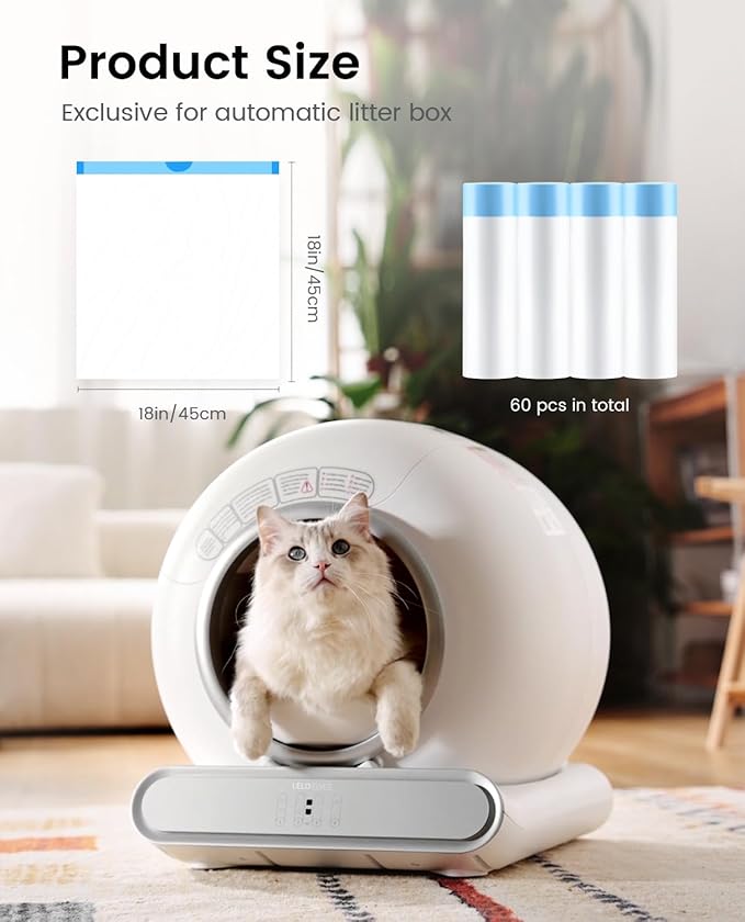 - CUSTOMIZE DESIGN: Our litter box liners are designed exclusively for automatic cat litter boxes and are compatible with the LELO ELVES LMSP-10 for a seamless fit. Size: 18 x 18 inches (45 x 45 cm).