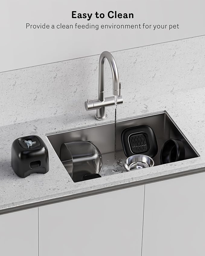 - Double-Lock Security: Guardian -- It has a double-lock design, even if I wanted to, I couldn't open it! When you're not home, it's like my guardian. Even if I bump into it, it won't spill food, you don't have to clean up after me anymore