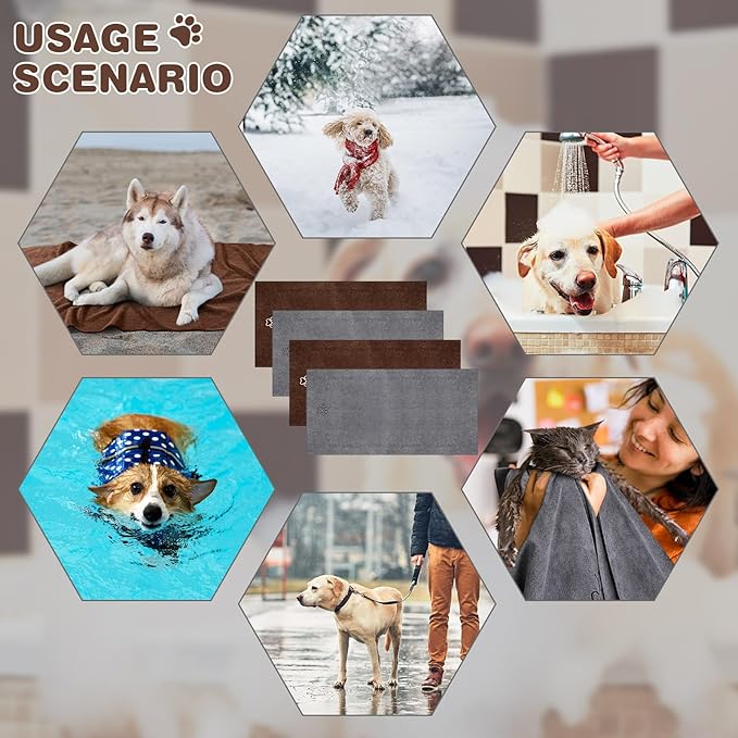 - Dog Bathing Supplies: there are 4 puppy towels in the package, gray, and coffee color, which are sufficient to satisfy your pets' daily uses and replacements, and you can give the bath towel for dog to others who adopt pets as well
